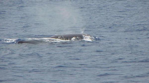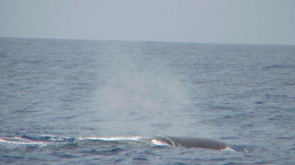 The blowhole is situated very close to the front of the head and shifted to the whaleās left. This gives rise to a distinctive bushy blow angled forward.