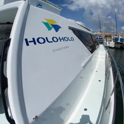 If youâre looking for a spacious vessel, Holoholo has got you covered! This 65-foot long and 24-foot wide, agile power catamaran was built with safety and comfort in mind. Holoholo has a cruising speed of 20-23 knots, but the fastest speed is 27 knots.