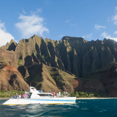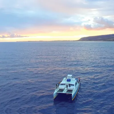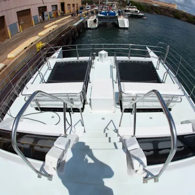Holoholo was designed to eliminate side-to-side rolling motion by slicing though the water, resulting in a smooth ride. Twin diesel engines provide the power to get you to the beautiful sights of the Napali Coast and Niihau faster than any other vessel.